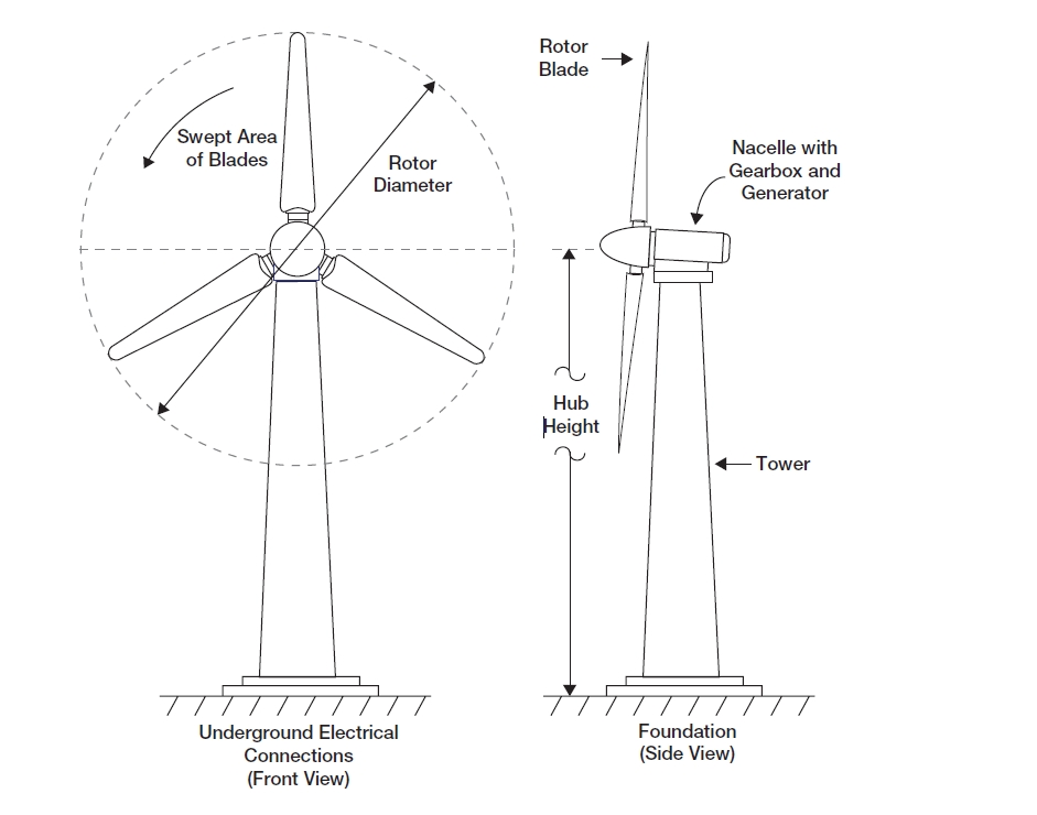 - Rotor Blades (aerodynamic blades capture wind energy and initiate rotation)